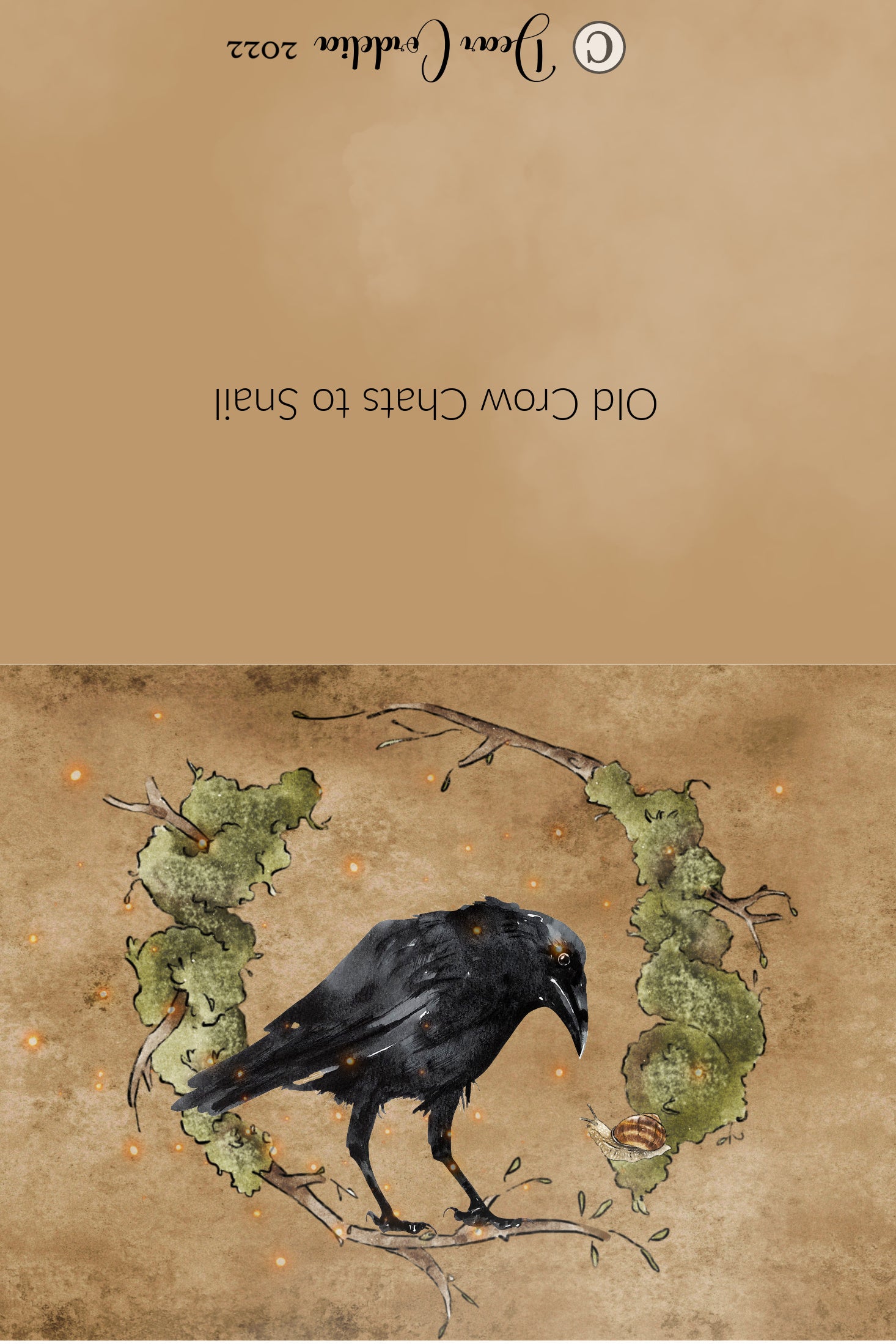 A magical tiny card featuring an old crow I saw chatting to a snail outside Curse Merchants Cottage. An enchanting keepsake for anyone who receives it in the post.